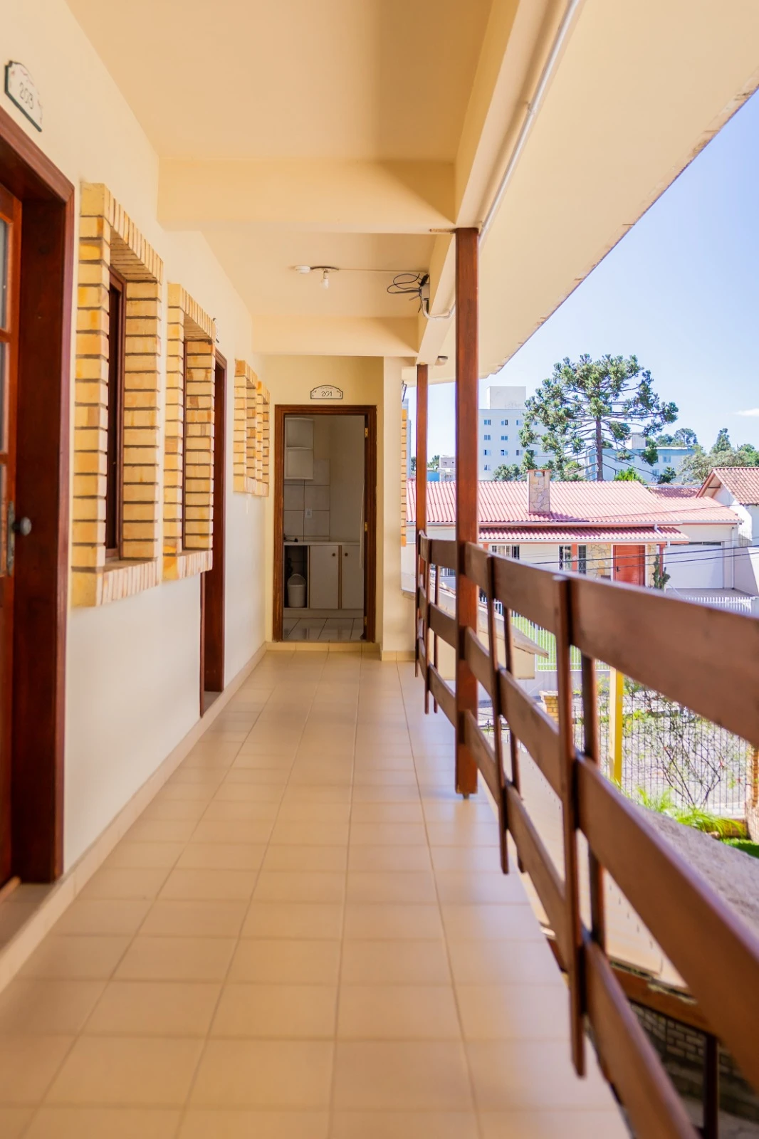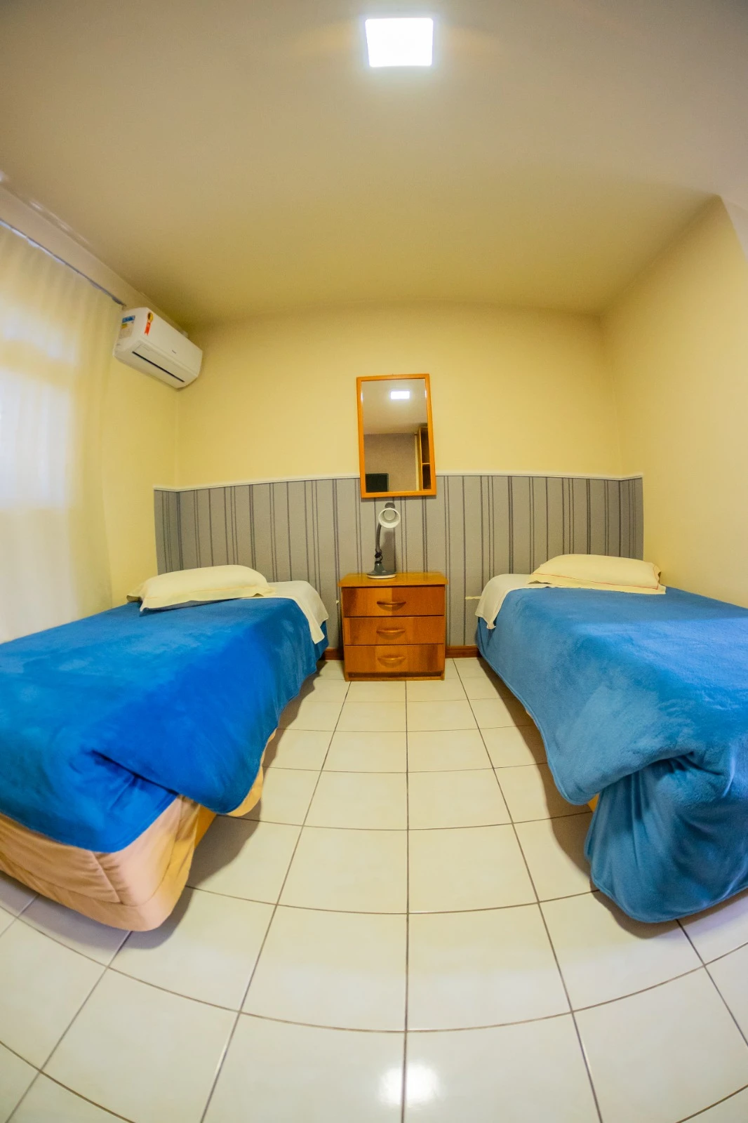 Extremamente acolhedor, o apartamento superior possui duas camas de solteiro, ar-condicionado split, frigobar, cama box, mini pia, telefone, Internet Wi-fi, TV por assinatura e aquecimento de água central.